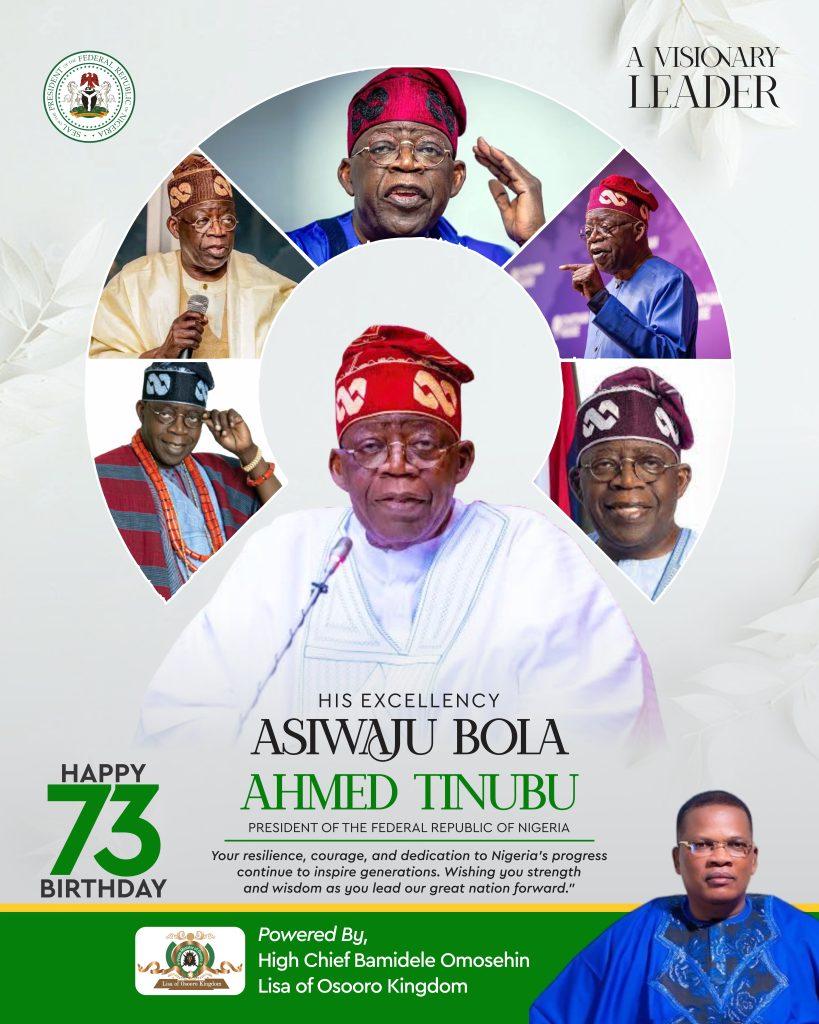 High Chief Bamidele Omosehin has extended warm felicitations to President Asiwaju Bola Ahmed Tinubu on his 73rd birthday, celebrating his enduring legacy as a transformative leader and statesman whose contributions to Nigeria’s political and economic development remain unmatched.